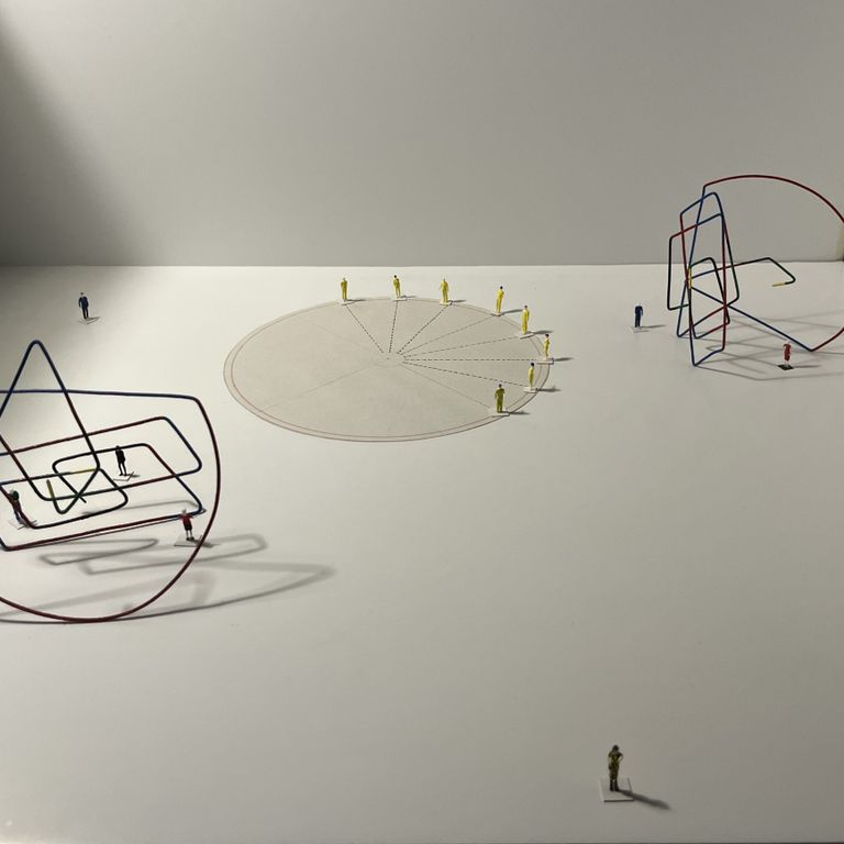 La Danse d’Apollonius est une performance chorégraphique impliquant un grand groupe d’amateurs qui investissent et incorporent les cinq anneaux olympiques. Par la marche, la ronde, la force et l’ivresse de la répétition, ses protagonistes mettent en jeu et en exergue un phénomène visuel surprenant lié au problème des contacts du mathématicien grec Apollonius de Perge (IIIe siècle av. J.-C.), qui consiste à trouver un cercle tangent à trois cercles de rayons différents. Se joue ici pour tous, avec peu d’éléments mais essentiels, quelque chose de la géométrie sacrée, cosmique, comme pour les derviches tourneurs ou pour les danseurs de la Sardane.